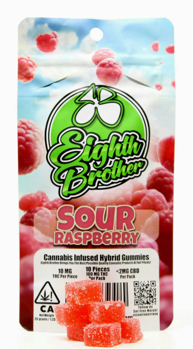 Indulge in the delightful world of Eighth Brothers Sour Raspberry Gummies, where each enticing gummy is artfully infused with premium cannabis oils for a consistently safe experience. Immerse your taste buds in the harmonious blend of sweet and sour notes, creating a candy-like sensation that adds a delightful "zing!" to your day. Explore the perfect balance of flavors, elevating your experience to a new level of cannabis-infused enjoyment.