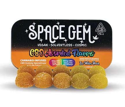 CBD 1:1 SpaceDrops - A miraculous rainbow of natural flavors to make a mouthwatering Full Spectrum, Gluten Free, Vegan AWARD WINNING gummy. Yes that's right this product won BEST EDIBLE at the 2023 Emerald Cup and claimed the first Golden Bear at 2024 California State Fair!