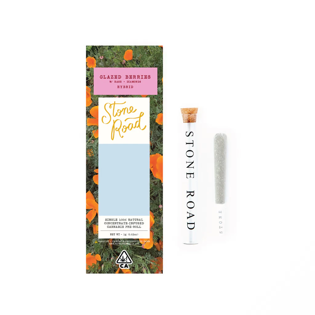 At Stone Road we grow our small-batch, all-natural flower in the most sustainable way possible, using only solar power and regenerative water practices. Each of our whole flower joints is then hand-rolled in French papers and twice lab tested for purity and potency, resulting in the healthiest and happiest bud in California. Contains 1 1g prerolls. Weight: 1g.