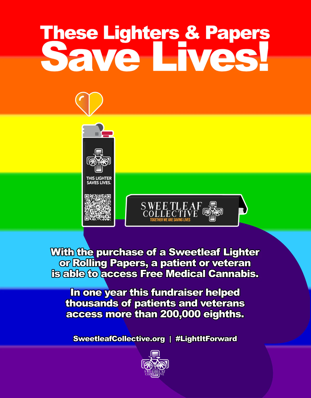 Cannabis retailers and smoke shops can support compassion by selling Sweetleaf lighters and rolling papers. With every purchase a patient or veteran is able to access free medical cannabis. This fundraiser has created access to more than 200,000 eighths at no cost to patients.